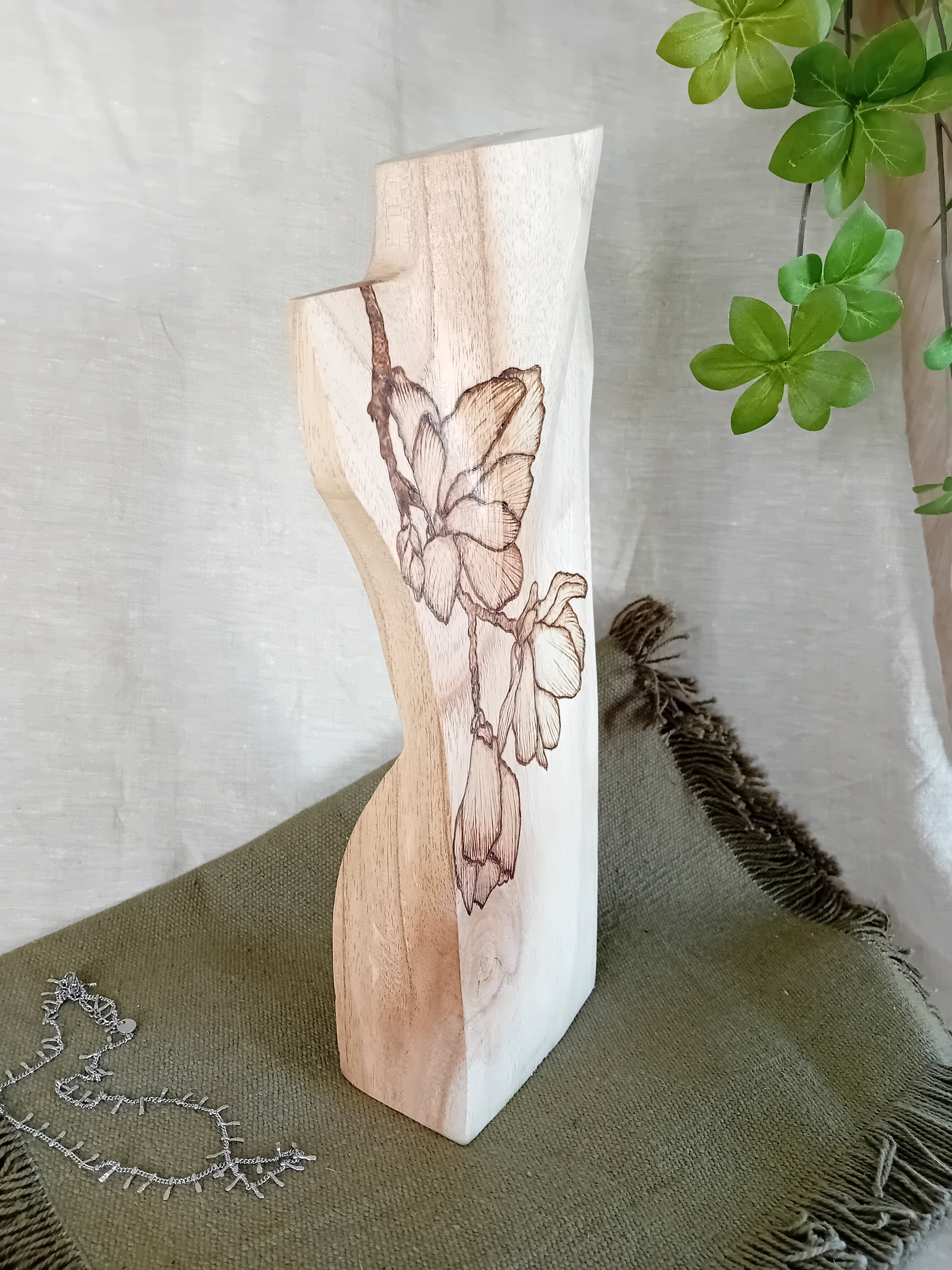 Buste en bois de Suar sculpté à la main. C'est un bois exotique massif issu de forêts gérées par un organisme de protection de l'environnement. Finition brute, non teintée, non vernie.
